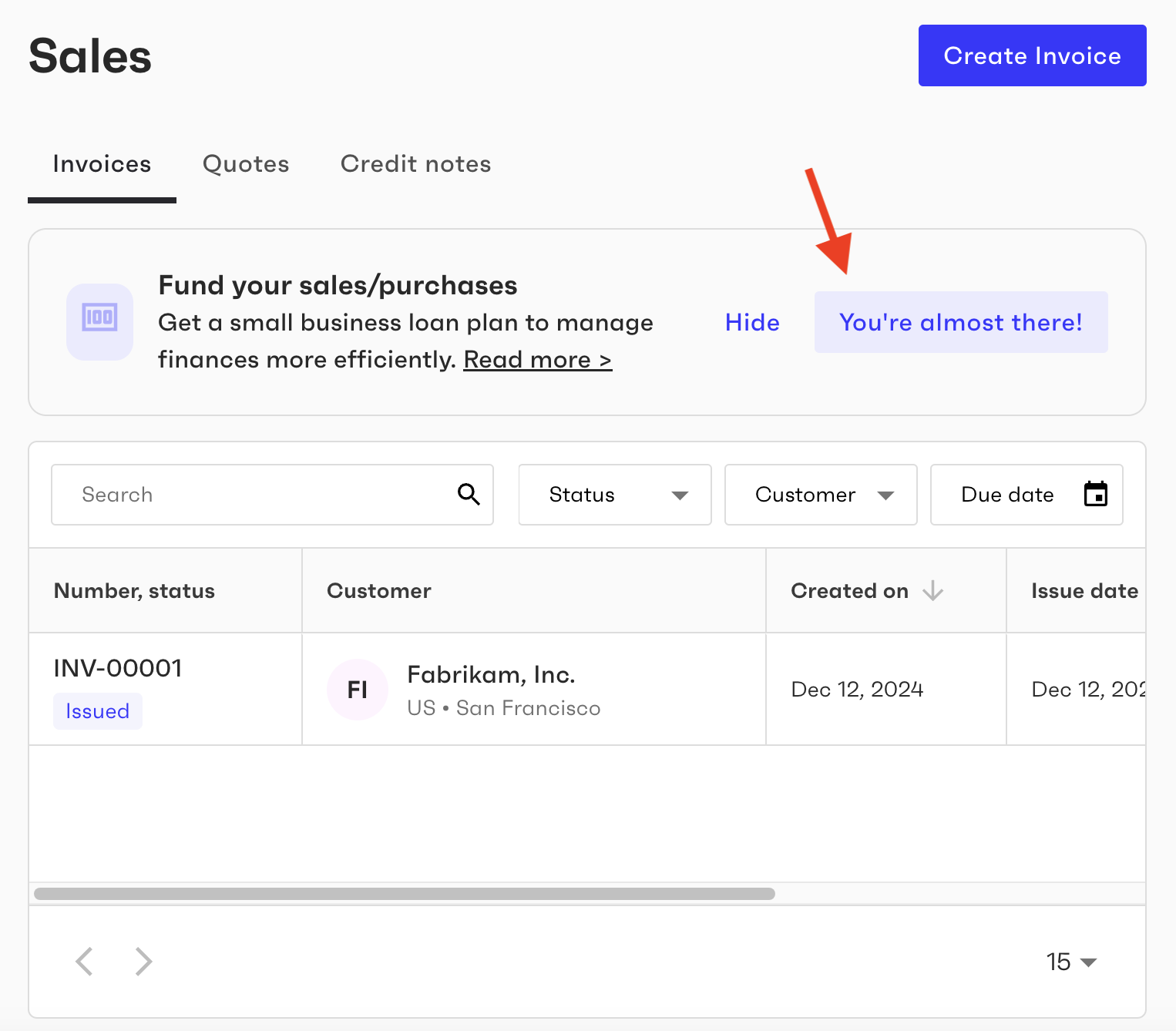 issuedandpartially_paidstatuses can be financed. - Invoice due date must be at least 7 days from the current date.