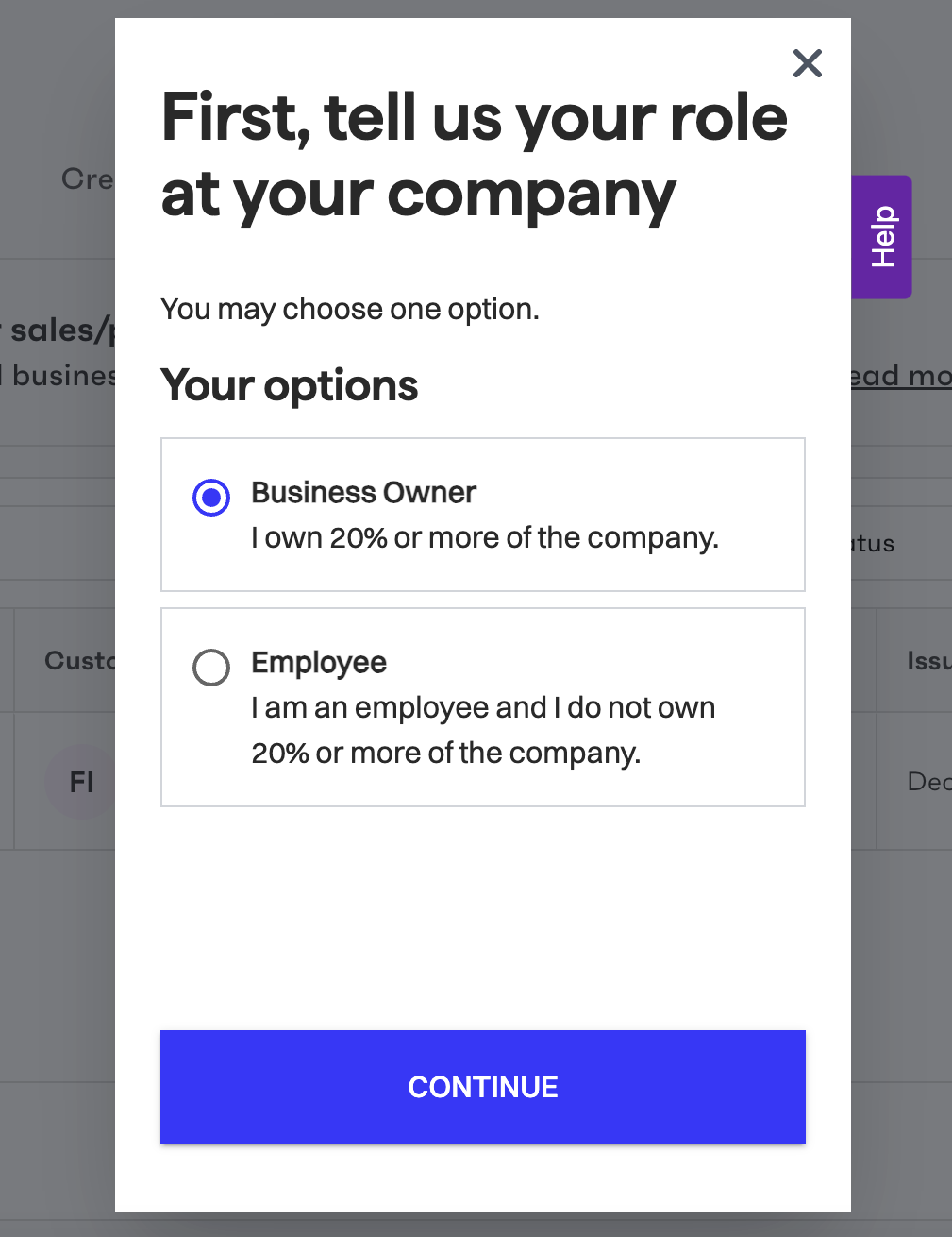 In the sandbox environment, the onboarding popup has Skip buttons that let you skip certain parts of the onboarding flow and quickly get your test entities onboarded.