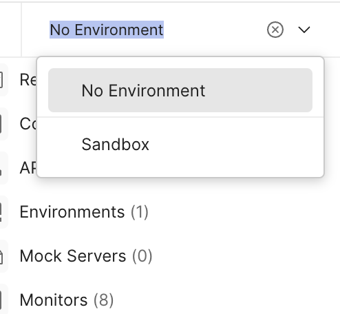 Once in Postman, on the left menu, click Environments, then click the... symbol to Create a fork from the Sandbox environment: